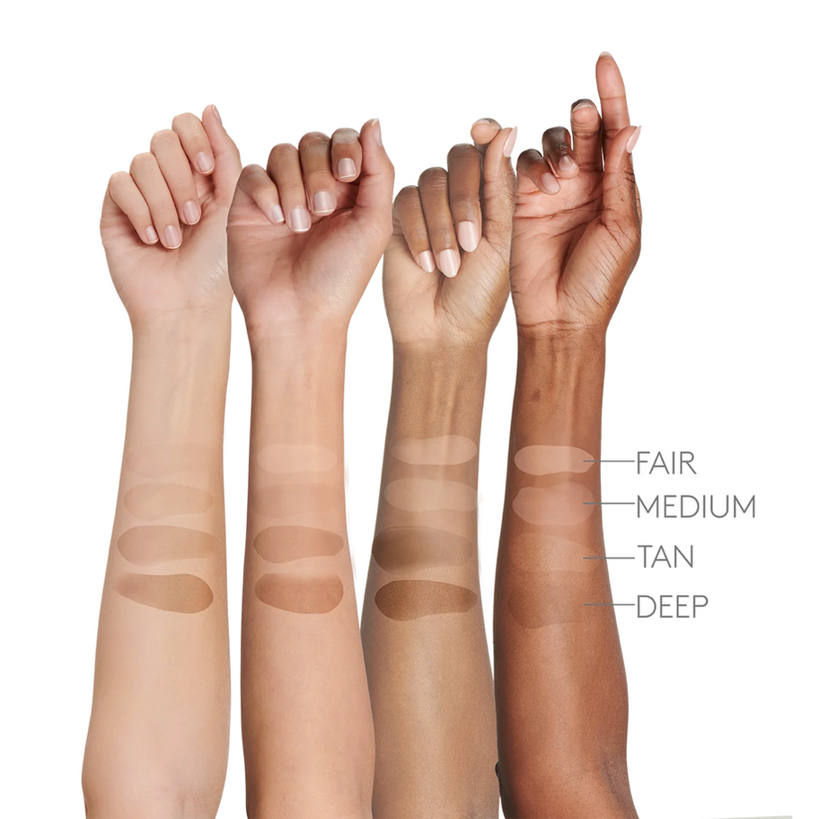Available in four uniquely flexible shades, each ideal for a broad range of skin tones and under tones. Safe for all skin types, including sensitive.